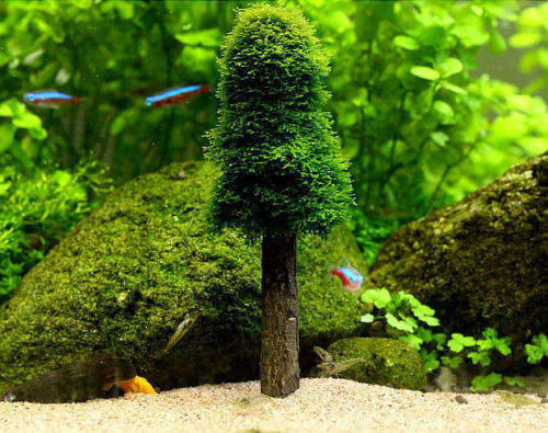 Das Moosbäumchen hat die Form einer Tanne bzw. eines Weihnachtsbaums und sieht einem echten Holzbaum zum verwechseln ähnlich. Somit ist der Moosbaum ein klasse Gestaltungsobjekt für alle Naturaquarianer und Aquascaper.
